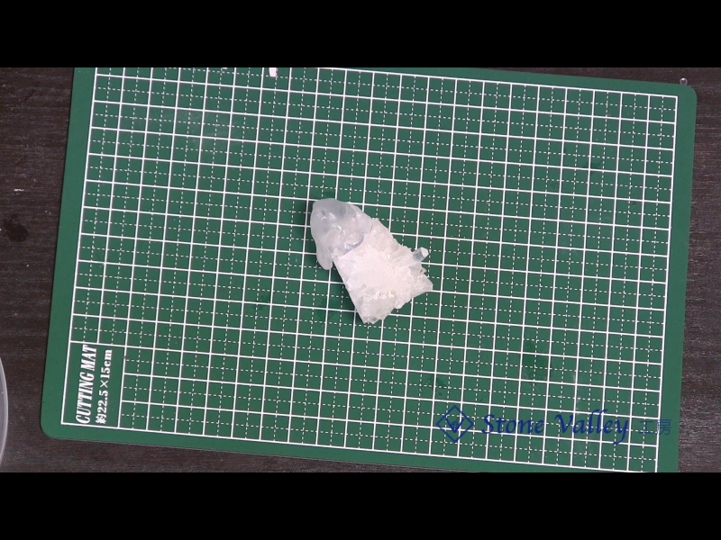 しっかりと固まるまで放置して下さい。少しでも柔らかい状態だと、外す際の力加減で変形したり鉱物にくっついてしまう可能性が高くなります。せっかちな方は冷蔵・冷凍庫で冷却してもOKです。